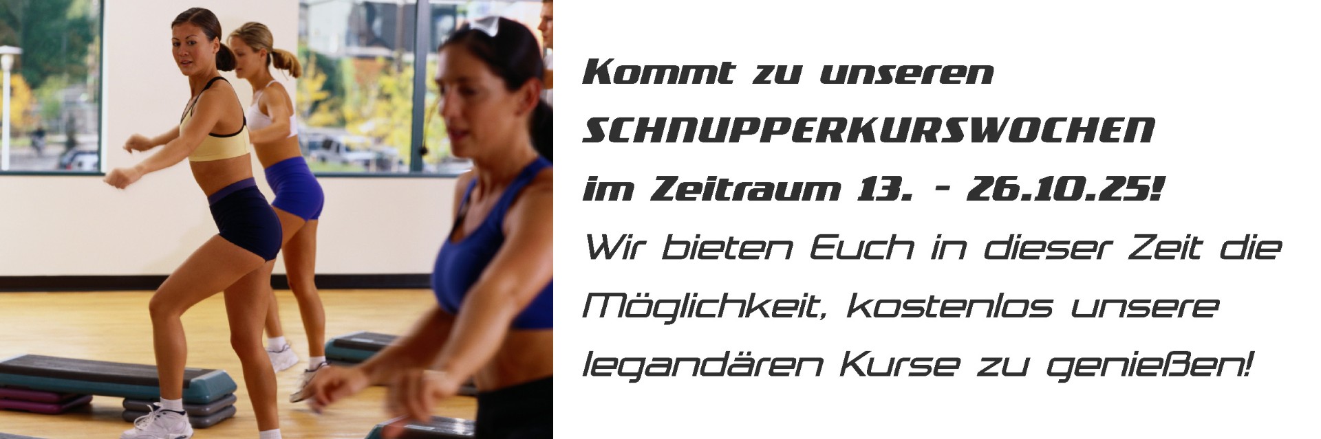 Es ist wieder soweit: Ab dem 13. Oktober 2025 öffnen wir unsere Türen für alle, die unsere legendären Kurse einmal unverbindlich kennenlernen möchten.